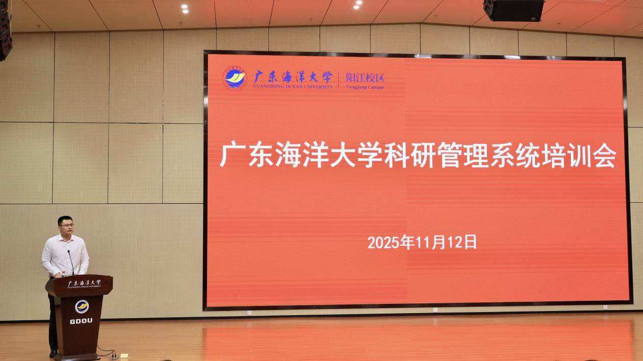 为推进科研管理系统全面应用,提升科研管理服务效能,11月12日下午,广东海洋大学科研管理系统培训会在阳江校区海纳楼113报告厅顺利举行。本次培训由阳江校区党委委员、管理办公室副主任兼教学科研部部长白浚宇主持,特邀学校科学技术部孙泉勇科长担任主讲,校区当天下午无教学任务安排的教师及教学科研部相关人员参加培训。