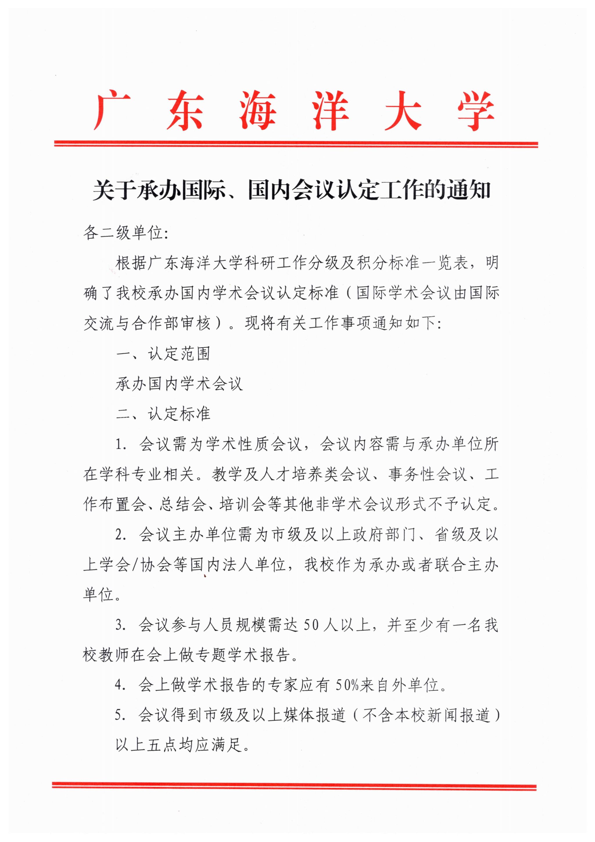 关于承办国际、国内会议认定工作的通知
